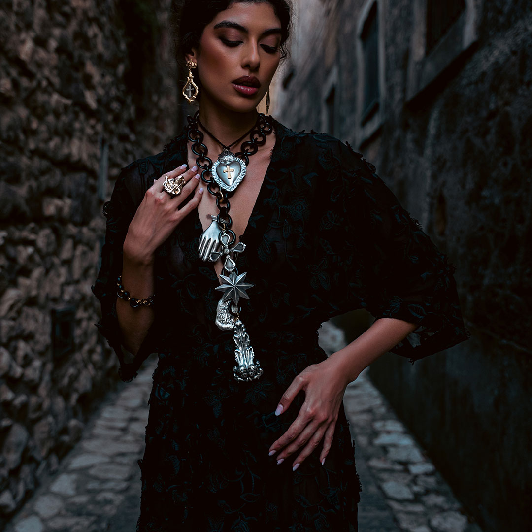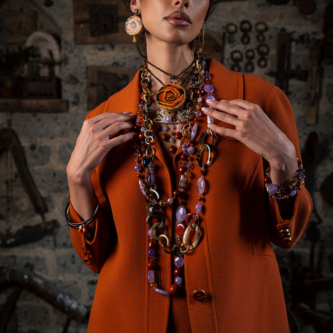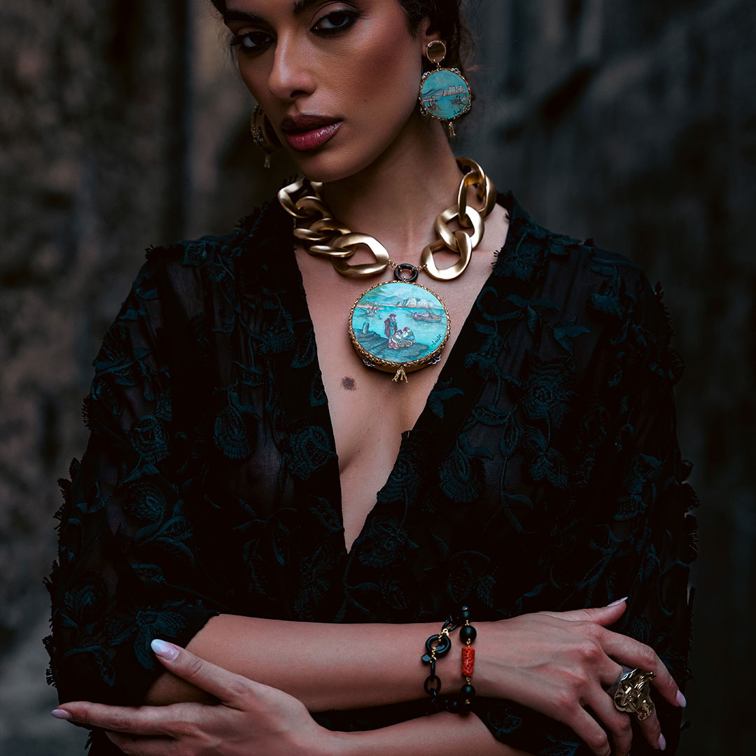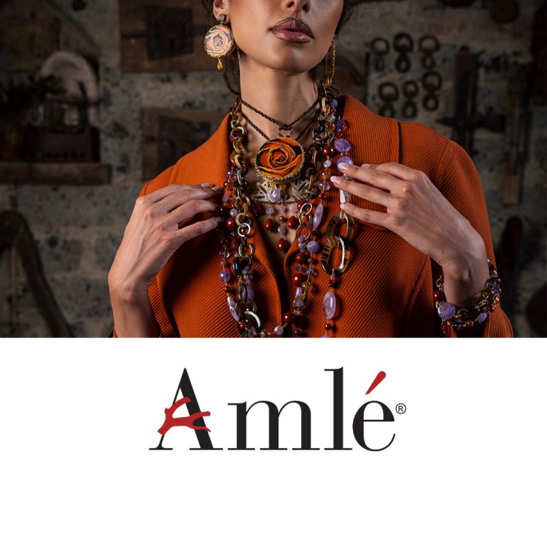 Amlè is a company that creates bold and original jewelry, combining noble metals and natural stones with unconventional materials like hand-painted goat leather or tambourine wood. Each piece is handcrafted, resulting in a truly unique creation.