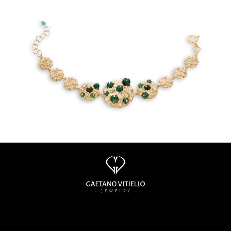 Gaetano Vitiello is a company specialized in crafting gold and silver jewelry enriched with turquoise, coral, pearls, jade, gemstones, and hardstone cameos. Each collection showcases unique artisanal techniques, such as the “Uncinetto” line, created using a crochet-like tool and an ultra-fine silk thread, or the “Cathedral Enamels” collection, featuring artistic enamels and mother-of-pearl inlays.
